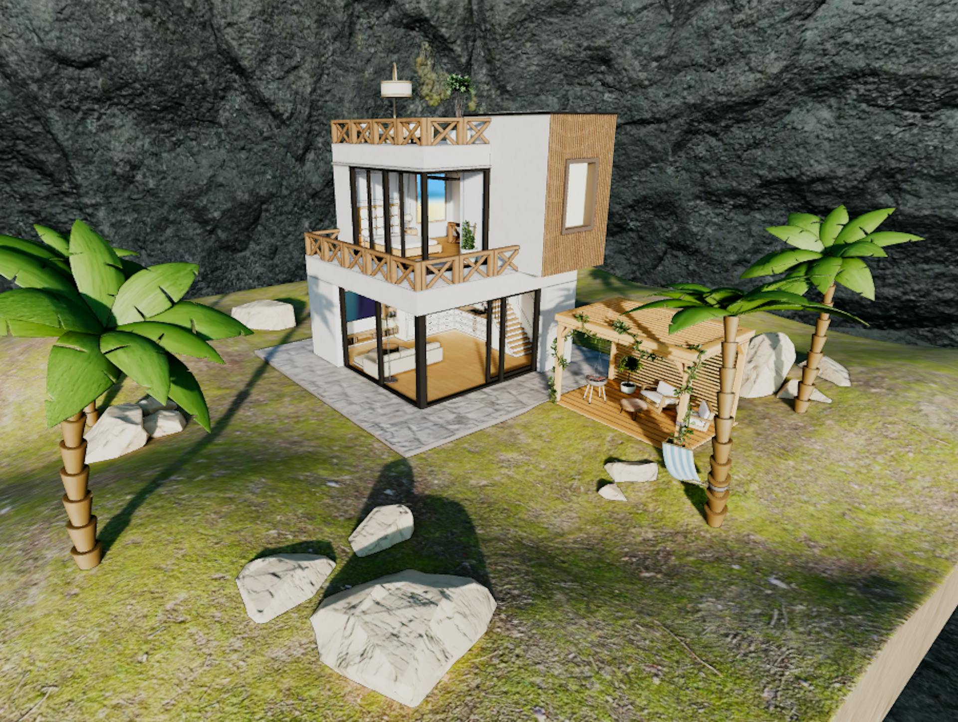 This project features a 3D isometric house modeled and textured in Blender, then optimized and imported into Three.js with baked textures. The goal was to create an interactive website where users can explore the house by clicking a button to focus on each room individually, highlighting its layout and design.
