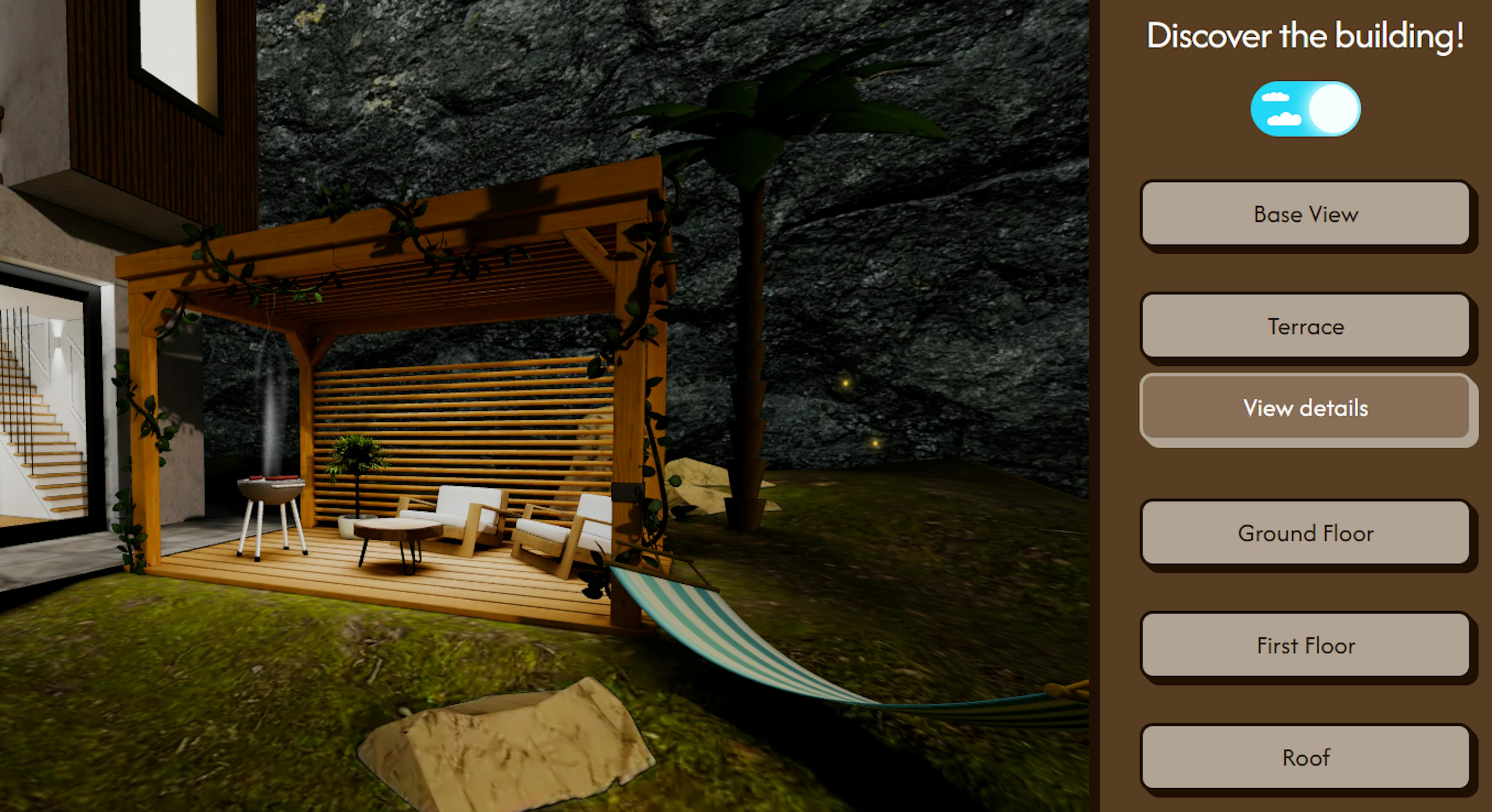 Additionally, a day and night mode toggle was implemented to showcase the entire building in different lighting conditions, enhancing the atmosphere and visual storytelling.